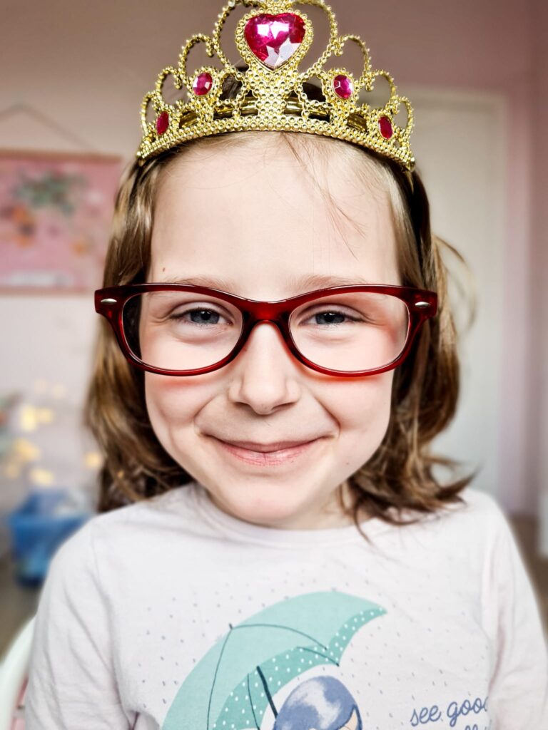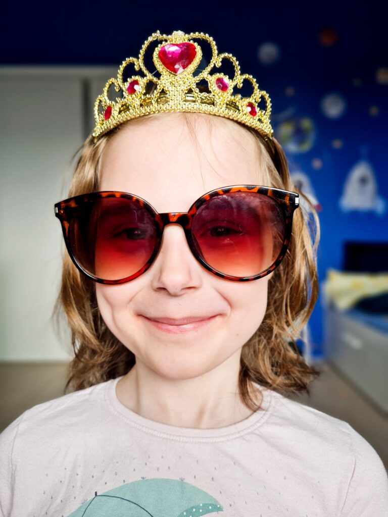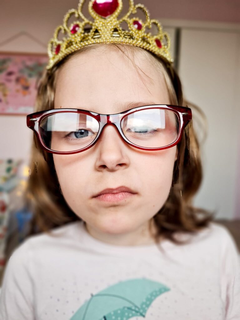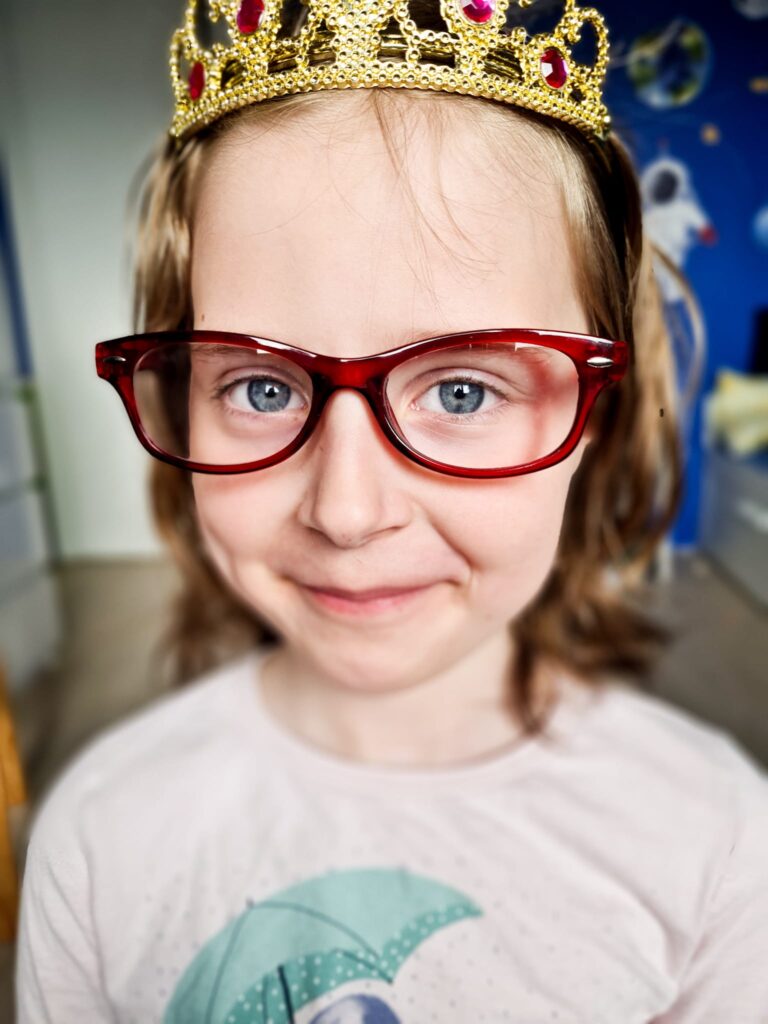 Odblaski przeszkadzają przede wszystkim przy portretach. Jeżeli dziecko jest gdzieś dalej ten odblask nie rzuca się aż tak w oczy. Możemy też troszkę zsunąć okulary z nosa lub poprosić o zdjęcie ich do zdjęcia – jednak uważałabym na to, aby dziecko nie poczuło, że okulary to przeszkoda do fajnych zdjęć lub nawet nie poczuło się gorsze od dzieci bez okularów. Dlatego najlepiej jest poszukać innej pozycji, która sprawi, że odbicie nie będzie aż tak widoczne, albo najlepiej wcale go nie będzie.