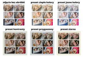 Dostaniesz 5 presetów, które możesz dowolnie modyfikować według swoich potrzeb – rozjaśniać, przyciemnić czy zmienić kolorystykę. Preset to baza – możesz zostawić jak jest lub zmieniać po swojemu.